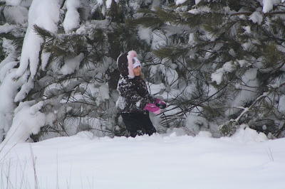 My husband gets home and stirs the noodles and then takes Elaina. “Do you see Cheyenne attacking the trees?” “Yep, she’s been yelling at the snow all day to ‘get down’. I guess she finally decided to do something about it.”