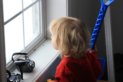 Cheyenne’s waiting in the playroom. “Watch cd? Watch cd?” (This is code for watch tv, which actually means watch a movie.)