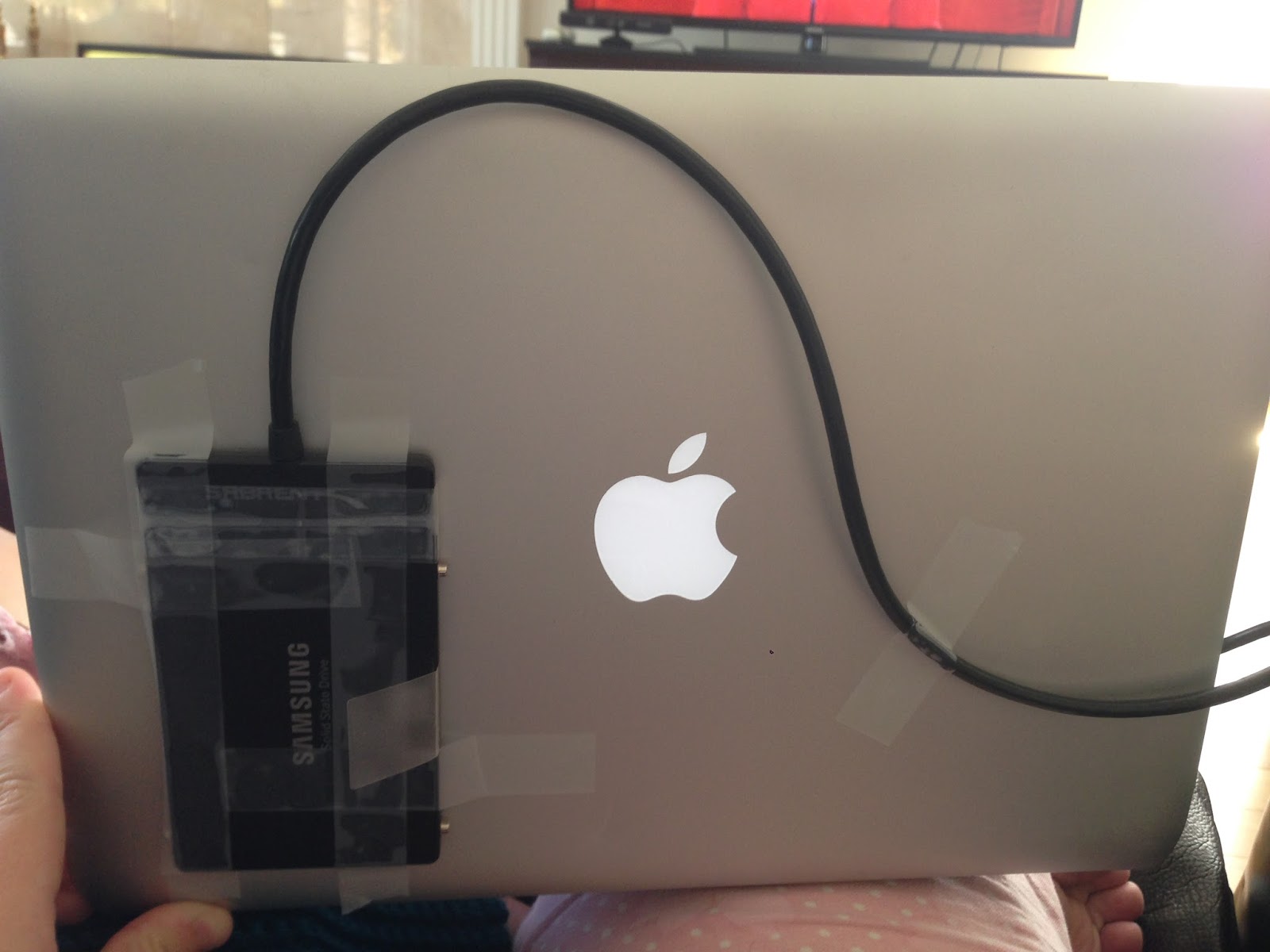 That’s my hard drive. Taped to the back of my computer. Yep. Bypass. It blinks and everything. Hopefully surgery will go well once we get the new part.